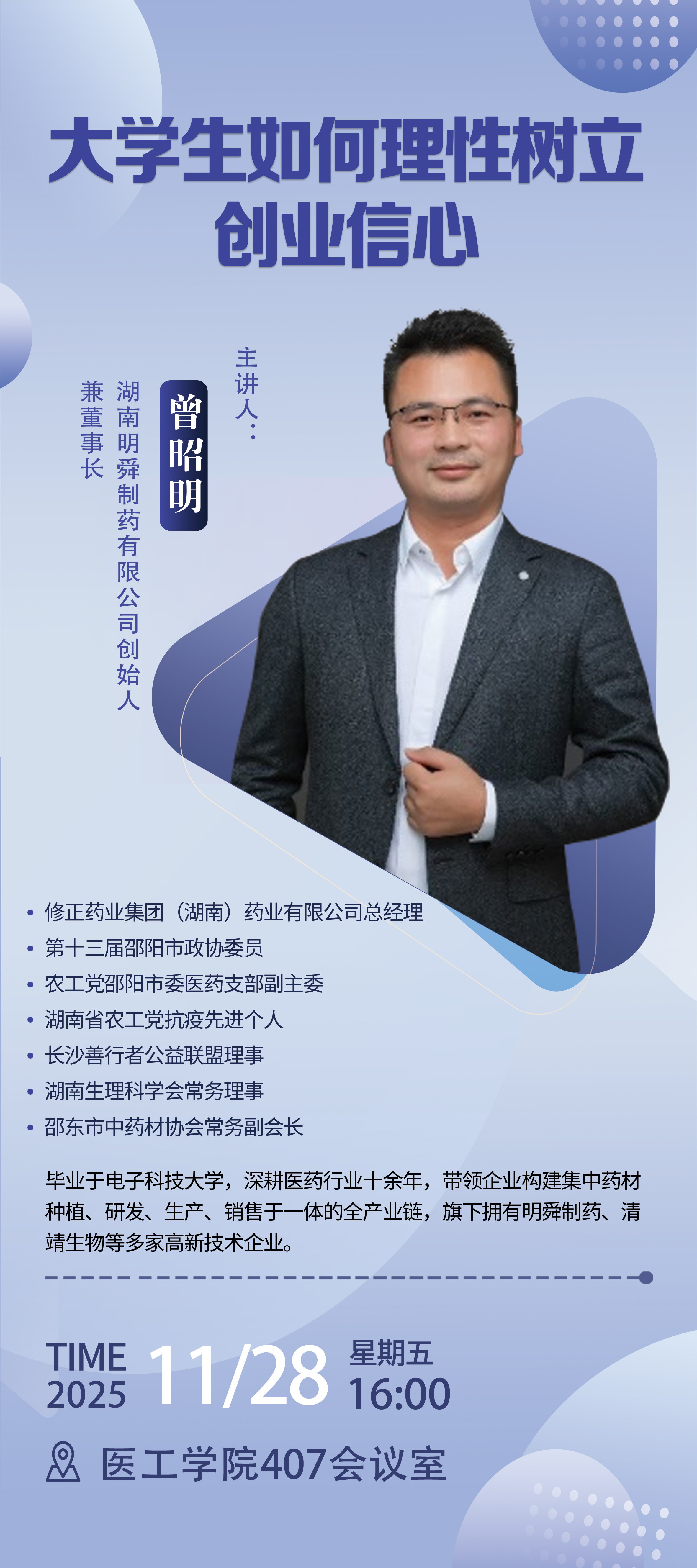 上一篇: 【创新创业讲座】全国大学生医学创新大赛暨 “一带一路”国际竞赛2026赛季解析